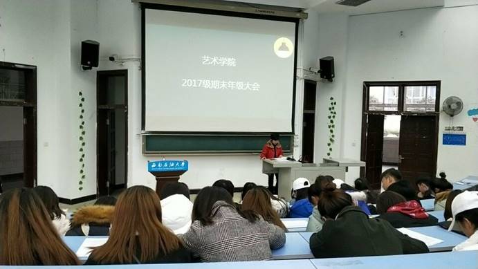2018年1月2日17点,艺术学院2017级期末年级大会在思学楼B110召开,艺术学院2017级辅导员何姗老师主持会议。