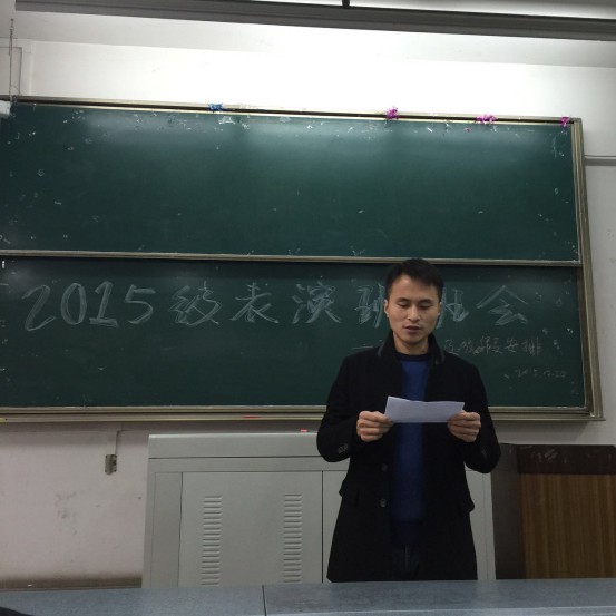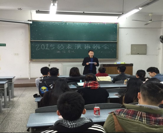 2015年12月24日下午两点三十分,西南石油大学艺术学院2015级表演班在博学楼B107开展了以“诚信应考”为主题的班会,辅导员窦雪锋老师参加了本次班会并发表讲话。