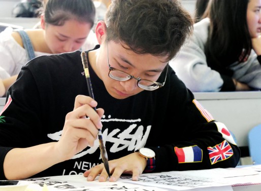 张鲁同学现场书写毛笔字