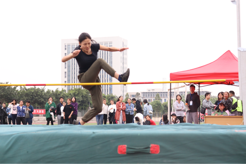 4月14日上午8:45,第四十二届校运会女子跳高比赛在一期足球场举行,我院袁明尧、黄晓璐、赵梨杉参与比赛。