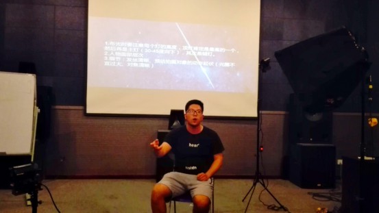 陈鹏在讲座中深入浅出,举一反三,先后对大范围移动延时摄影的拍摄、摄影摄像中常见的三点布光法等知识进行了重点讲解,并现场演示了常规三点布光法的灯光布局,就同学们提出的问题进行了详细解答,此外,他结合当前形势,全面分析了提高摄影作品质量的可行性,让同学们认识到采用低成本拍出好作品不是没有可能。