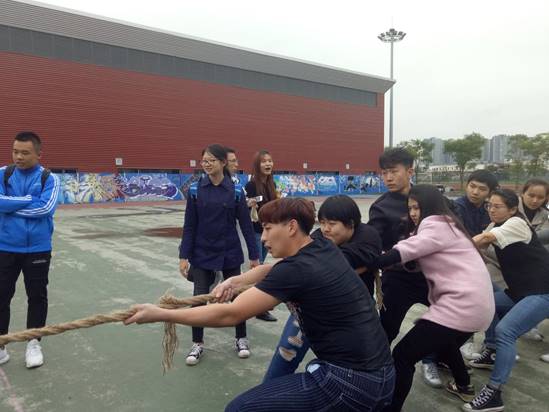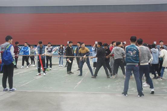在比赛还未开始前已有许多同学来到现场进行热身,口哨声响起时,对阵双方同时握紧缰绳一同使力,口号声气势喧天,观战的老师与同学在一旁呐喊助威,使现场气氛更加火热。来自2016级播音一班的王非凡同学,不顾身体伤痛,带病坚持参加比赛,希望能为团队出力为班级挣得荣誉。