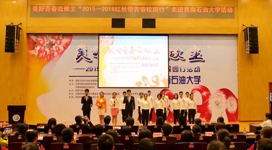 为增强大学生对艾滋病的防护意识,提高自我保护能力,推进大学校园防艾活动的深入开展,10月27日,由国家卫生计生委、教育部、共青团中央、国务院防治艾滋病工作委员会办公室指导,中国性病艾滋病防治协会、中国健康教育中心、中国疾病预防控制中心、共青团中央权益部和中国高等教育学会主办,西南石油大学具体承办的“美好青春我做主——红丝带健康大使青春校园行”活动在我校图书馆学术报告厅举行。中国性病艾滋病防治协会秘书长王新伦、联合国艾滋病规划署驻华办事处代表Catherine Sozi出席会议并致辞。著名歌手、国家预防艾滋病义务宣传员蔡国庆出席会议并担任主题访谈嘉宾主持。