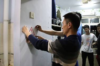 为进一步加强寝室文化建设,提高学院学生寝室卫生状况,做好安全检查工作,艺术学院辅导员老师窦雪锋于4月17日与同学们一起给所有宿舍贴上安全用电小贴士和寝室文明公约。