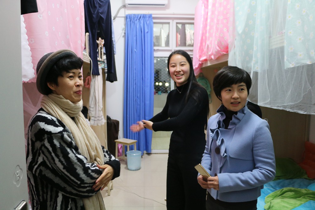 寝室走访不仅让同学们感受到了老师们的关怀,让老师们与同学们在课堂之外建立起一座沟通的桥梁。据悉,本学期各专业年级班主任、辅导员老师每周都会都与同学们在寝室相约,共同分享生活、学习中的点滴。(图文/艺术学院 团宣部 陈汝一 张婉 程晨)