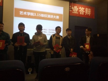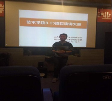 3月15日晚7:00,艺术学院3·15“维权在我心”主题演讲大赛在艺术大楼601举行,艺术学院2014级编导专业陈澎以92分的高分,赢取了本次演讲大赛一等奖。