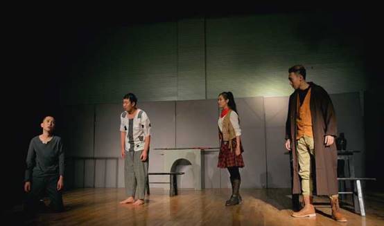 一束灯光从舞台上亮起,表演正式拉开帷幕。首先登场的是存在主义泰斗萨特的经典之作《禁闭》,演员王凯、徐枫婷、杨富裕饰演三个被打入地狱的游魂,他们互相怀疑,互相拷问,互相安慰,也互相伤害。话剧的最后他们终于认清了彼此的处境,在绝望中发出“他人就是地狱”的感慨。深刻的展示了人与人之间既相互依存又互相倾轧的矛盾关系,高度概括了现代社会人际关系的本质,以荒诞的形式指明自由对我们的重要性。接下来是裴昊轶、由子健、胡川洋、杨欣宇、钟国铭、林宏艾、蔡东昊带来的《群猴》,以一出争抢国民党民代会代表席位的闹剧,辛辣地讽刺了国民政府的腐败与无能。讽刺而又幽默的情节以及演员们精湛的表演,引得现场观众哈哈大笑,拍手叫好,同时也将此次活动的气氛推向高潮。黄伟杰、付垚带来的《人质》讲述了一个劫匪绑架一心求死的人质荒诞故事,引发我们对当代青年的价值取向和生存环境的深思,精彩的表演赢得了观众阵阵掌声。最后的独幕剧《警长的儿女》由高恺、裴昊轶、王青霜、邵晨喧挑起大梁。讲述了被囚禁的黑人青年与白人警长的故事。最终,虚伪、冷酷、自私的警长死在了坚守正义的亲生女儿的枪下。揭露了美国白人对黑人惨无人道的压榨,再现了黑人们在那段艰难岁月的悲惨遭遇,让人不禁热泪盈眶,种族之间的歧视与爱的伟大被演员们表现的淋漓尽致。