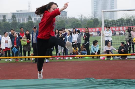 上午8点40分,来自我校各院系的35名同学聚集在一期体育场参加女子跳高比赛,艺术学院2016级表演专业李婷同学参与比赛。