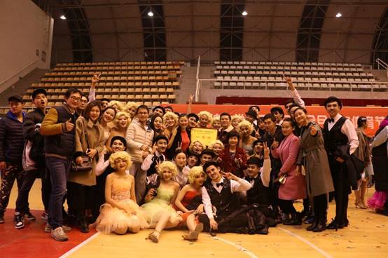 艺术学院代表队虽然倒数第二个出场,但是“玛丽莲·梦露和卓别林”的主题和别具一格的造型立刻激起了现场观众的热情。炽热的红唇、撩人的裙摆以及滑稽的西装马甲小胡子,再加上曼妙的舞姿和精湛的表演迅速把全场带入了摩登时代,而卓别林的诙谐幽默,玛丽莲梦露的万种风情,更是让全场观众鼓掌叫好。艺术学院代表队的无限魅力为全校师生呈现了一场完美的演出。在艺术学院拉拉队“艺术学院,魅力无限”的助威声中,艺术学院代表队以9.50的全场最高分实现了体育舞蹈大赛三连冠。