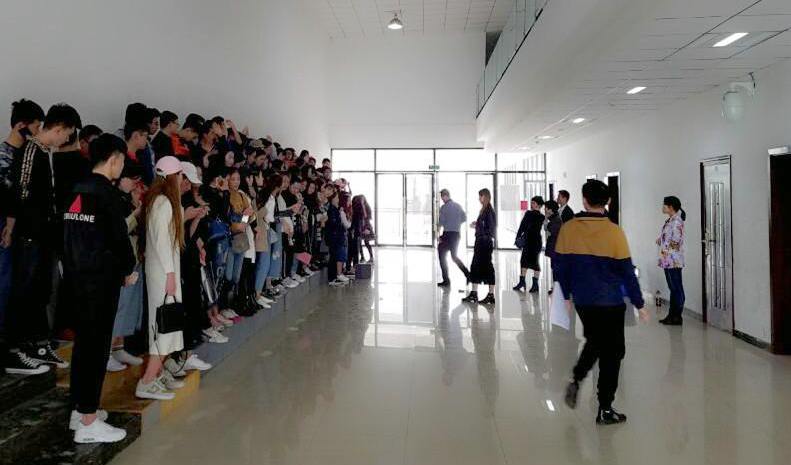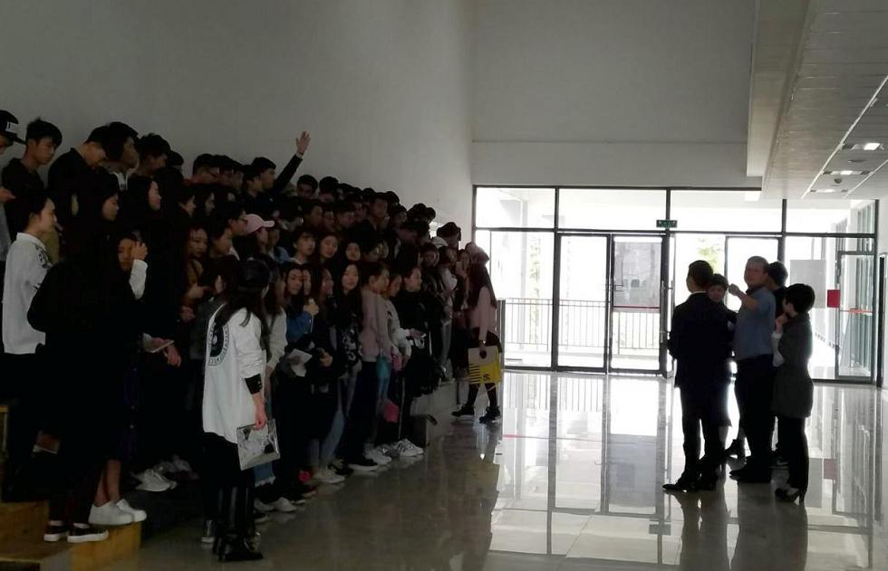 3月31日,西南石油大学艺术学院30名教职工及140名学生在艺术大楼201门口进行大合唱排练,演唱歌曲《没有共产党就没有新中国》。 (图/文 刘振华)