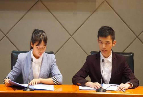 在互动环节中,几名同学就如何更好地实现社会主义核心价值观起身发表了自己的看法。随后在成语猜猜猜的游戏环节中,两组同学手舞足蹈,各有特色,不仅用语言向对方传达信息,更是将眼神、肢体动作也派上用场,激烈比拼使得现场气氛再次升温。各支部代表同学的小合唱《没有共产党就没有新中国》赢得现场同学的阵阵掌声。表演支部的小品《马路奇遇记》将现代社会中的热点话题“扶不扶老人”生动形象地演绎给大家。薛晴与梅曦文同学的古筝二重奏《渔舟唱晚》、《战台风》曲调灵透柔和,音韵明亮含蓄,潇洒飘逸、淳朴古雅,将本次团会推向了高潮。最后,此次小精华团会活动在校歌《飞翔》悠扬激昂的旋律中圆满结束。