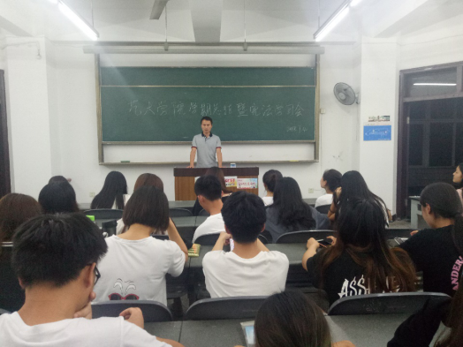 7月4日晚上21:30,艺术学院2016级在思学楼A505召开学期总结暨宪法学习会,辅导员窦雪锋老师主持召开此次大会。