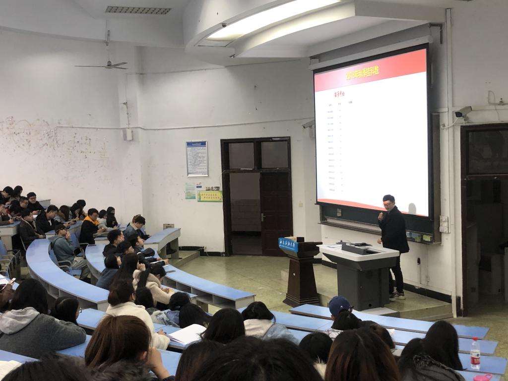 在2016级年级大会上,辅导员陈骅炜就上一学期各专业成绩和四六级情况进行了分析总结。提醒同学们应该早做毕业打算,做好自己的职业规划,对本学期工作重点和近期学生工作事宜进行安排部署,动员同学积极准备考研等相关事宜。