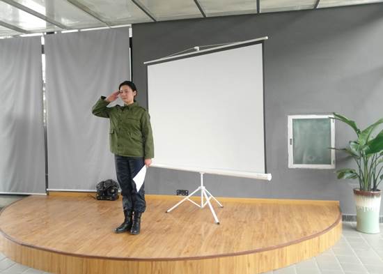 比赛的最后,杨润梅同学用标准的敬礼缅怀3月31日凉山森林火灾中英勇牺牲的30名消防官兵。