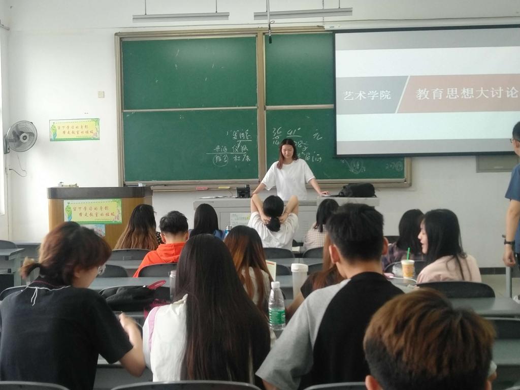 在此后的一个月的时间里,围绕本次教育思想大讨论的主题,艺术学院各班级都积极响应,并组织本班级同学以主题班会的形式进行教育思想大讨论。在讨论中,同学们纷纷提出自己的看法和意见。现代社会的信息化发展对学生学习带来的机遇和挑战利弊并存。同学们可以利用课后看老师安排的网上教学视频,通过网络自主学习,从网络中找到学习资源。但也会出现网络课程不被重视,出现刷课等行为。除此,出现同学们上课玩手机现象较严重,导致听课注意力不集中。在这次讨论中同学们认识到解决问题最根本的措施是要增强同学自身的自控能力,并对网络上各种信息进行真伪鉴别,筛选出可靠、实用的学习信息。其次现今大学生容易受周围环境影响,意志不坚定,缺乏强大的精神力量支撑自己向理想迈步。且学生学习太过死板,缺少灵活性和方法性。