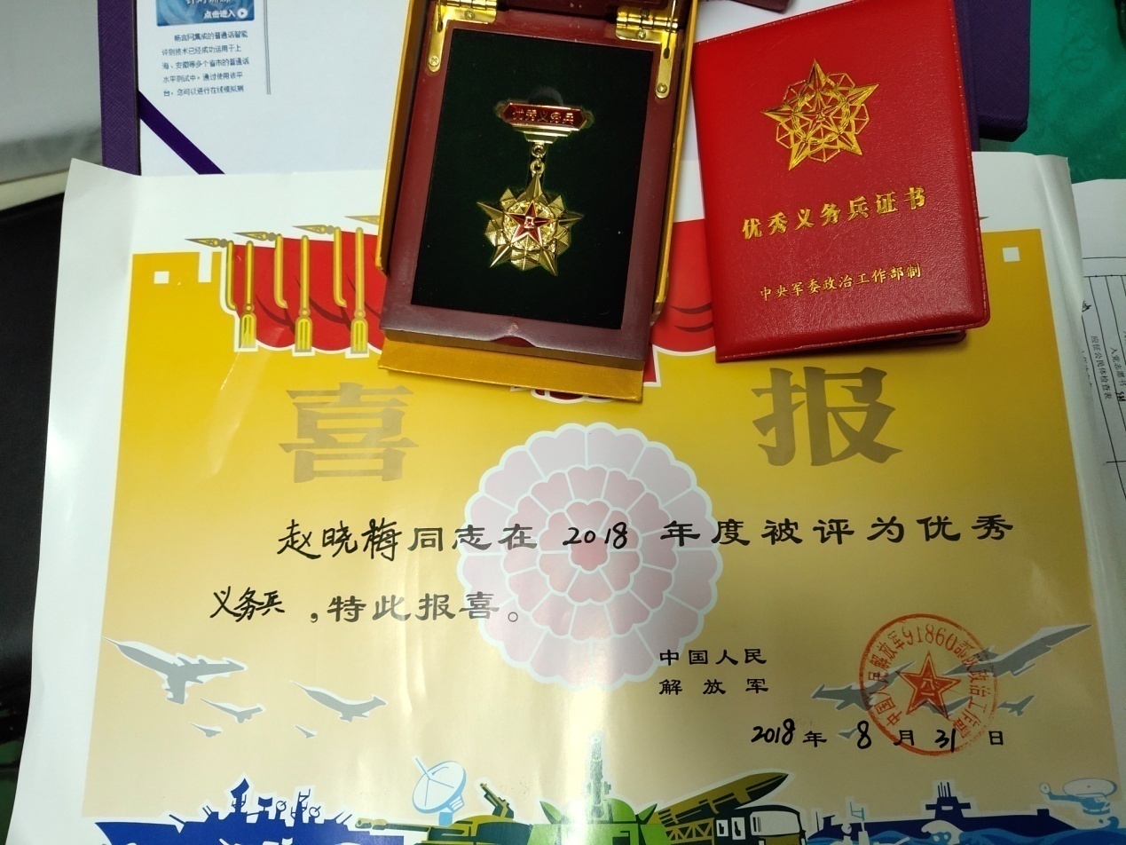 2018年荣获优秀义务兵