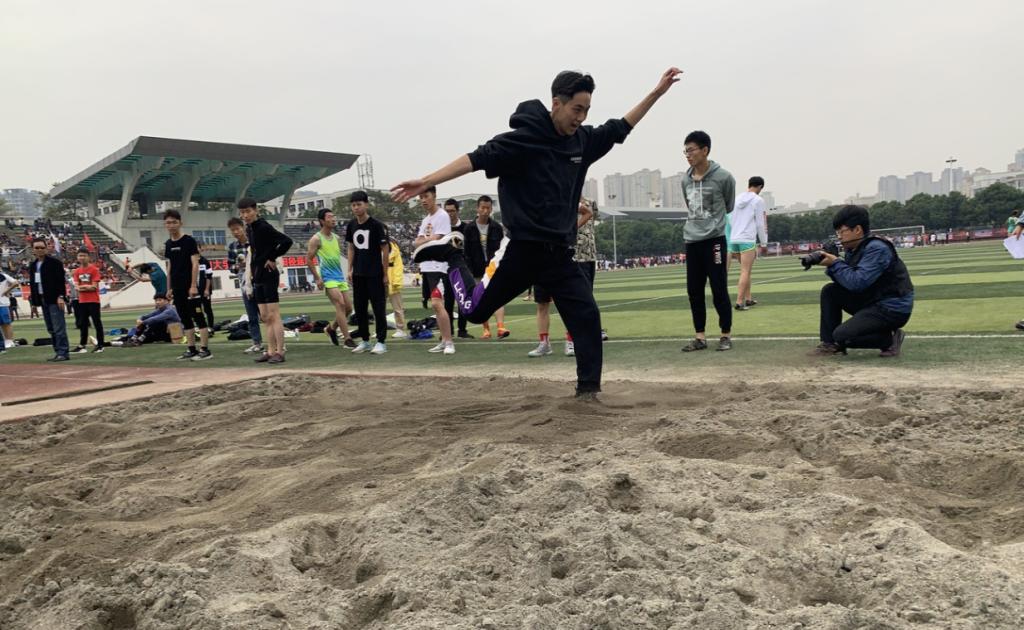 “四号选手就位,五号选手准备。”随着裁判的指令,商文瑞同学走到起跳点。热身,冲刺,起跳。一套动作行云流水。走出沙坑,留下证明这自己实力的印记。