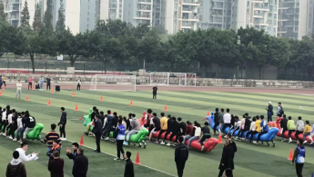 其中袋鼠运瓜项目率先开始,此项目由我院十名同学参加,该项目是团体项目,旨在蹦跳中增强团队协作能力,也十分考验同学们的体力,艺术院同学们配合默契,顺利完成比赛。