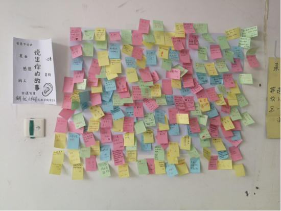 活动自11月中旬启动,历时1个多月,分为“书写烦恼、传递知识、投递信箱、讨论回信”4个方面。解忧小栈共匿名收集来信40封,便利贴200余张。通过收集同学们的心里话,了解了大学生的心理需求、心理健康、心理压力和心理问题,并通过逐一回复纸条,达到了解决困惑、回应倾诉的目的。