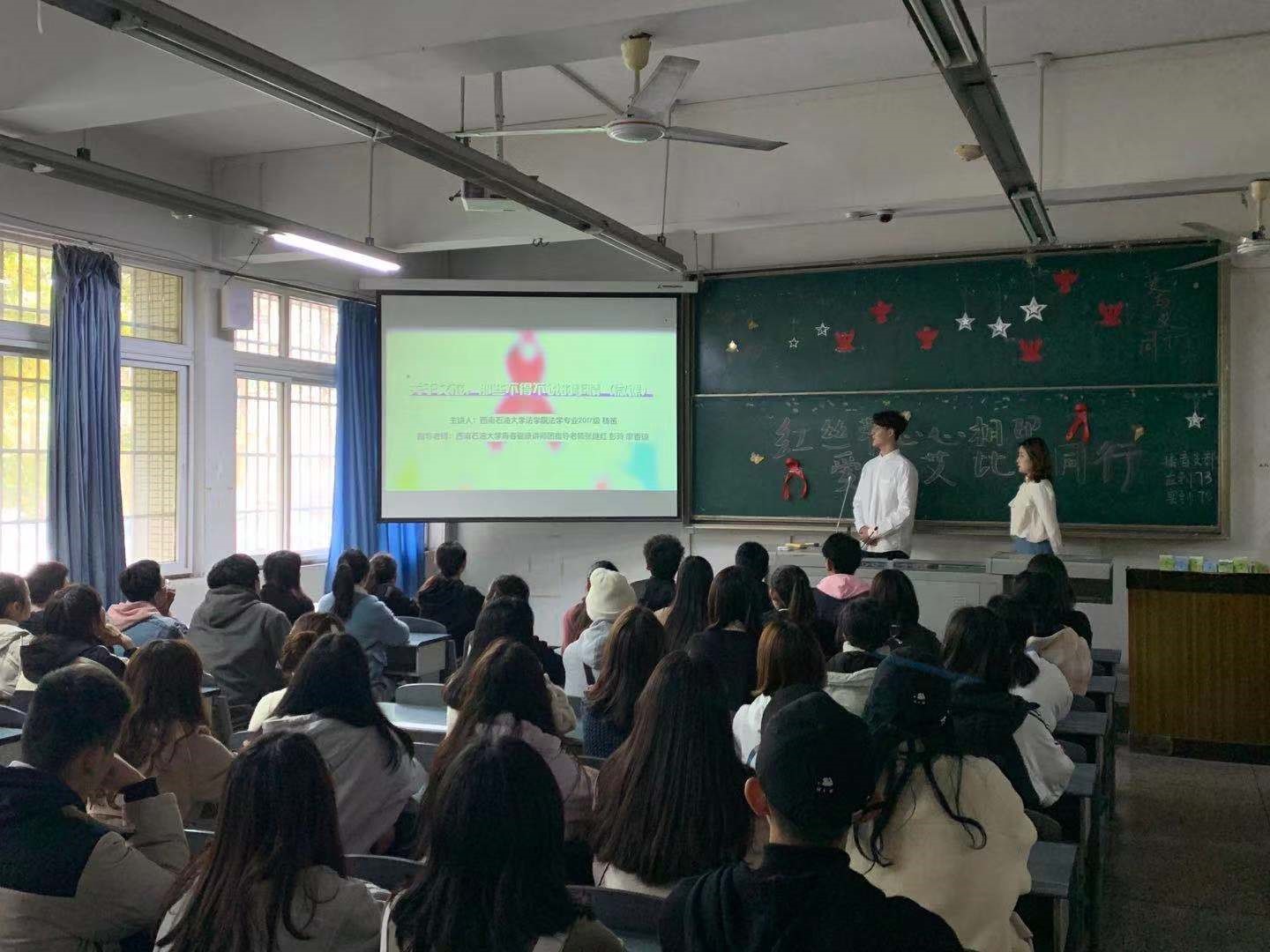 在20世纪80年代末,人们视艾滋病为一种可怕的疾病,艾滋病患者受到歧视。美国一些艺术家为了悼念因艾滋病而死亡的同伴,并用红丝带表示对他们的纪念,同时发起“倡导尊重艾滋病患者人权,推广预防艾滋病”的社会公益活动。艺术学院2018级播音第一第二第三支部在11月21日日下午,在博学楼B207教室,举办了以“红丝带心心相印,爱与艾比肩同行”为主题的团组织生活。