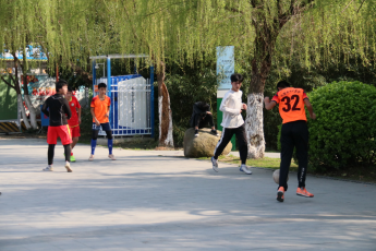 足下传递的不仅是足球,还是爱和希望。路遇垂钓者之后,我继续沿着河边小路往前走这时一群朝气蓬勃的男孩儿吸引了我的注意,虽还是三月春分之际,男孩儿们却已经穿上了短袖,因疫情的影响中小学还没能开学,男孩们没了训练场地,这片小公园便成了他们的训练场所,场所的限制并没有影响他们的心情和发挥,他们脸上洋溢的笑容也影响了我,我瞬间觉得放松了很多。少年强则中国强,男孩们的行动不仅让我在此次疫情中看到了希望,也让我看到了中国国足的希望!