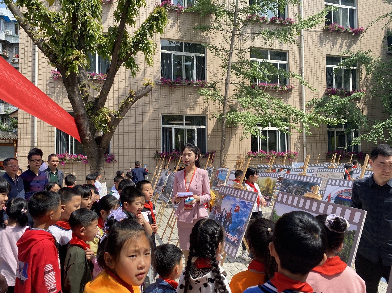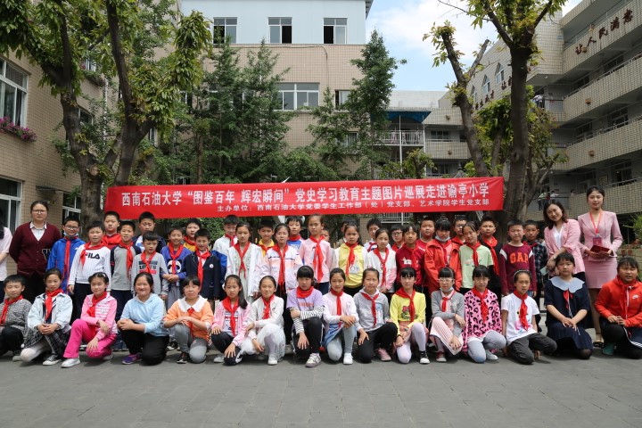 4月27日-29日,由西南石油大学党委学生工作部(处)党支部与西南石油大学艺术学院学生党支部联合举办的“图鉴百年,辉宏瞬间”党史学习教育主题图片展分别走进谕亭小学、新都一中。