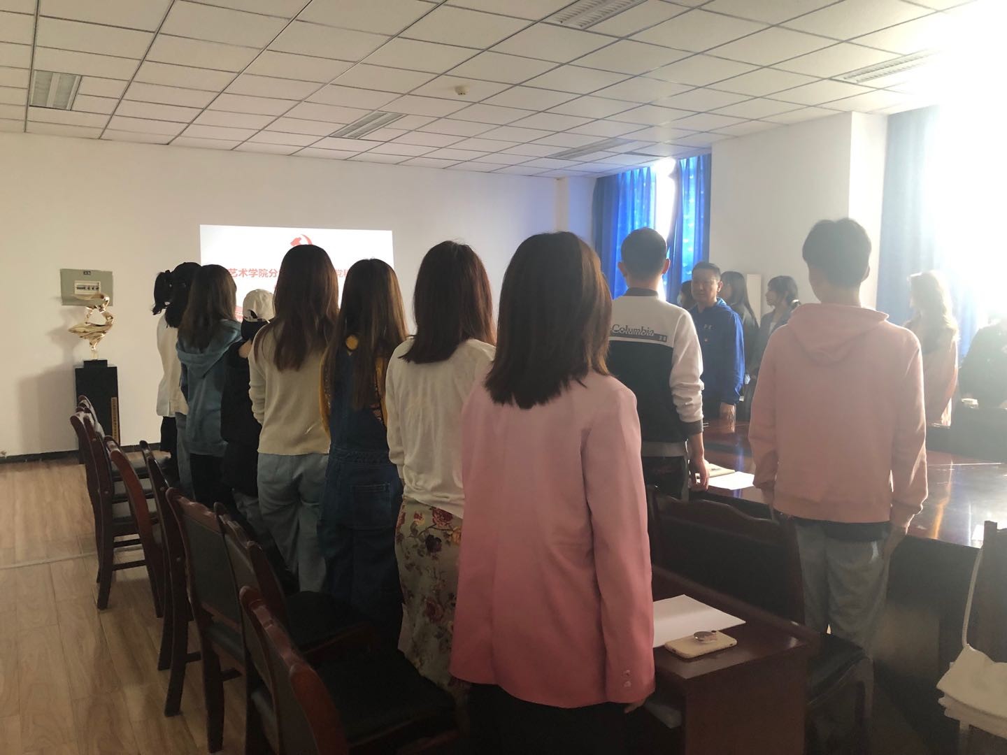 艺术学院分党校于2021年4月22日下午2:10分在艺术楼306室举行第三期入党积极分子培训班开班仪式。学院院长焦道利、学院办公室主任王隆、团总支副书记、学生工作办公室副主任孙晓光与第3期入党积极分子参加开班仪式,开班仪式由王隆老师主持。