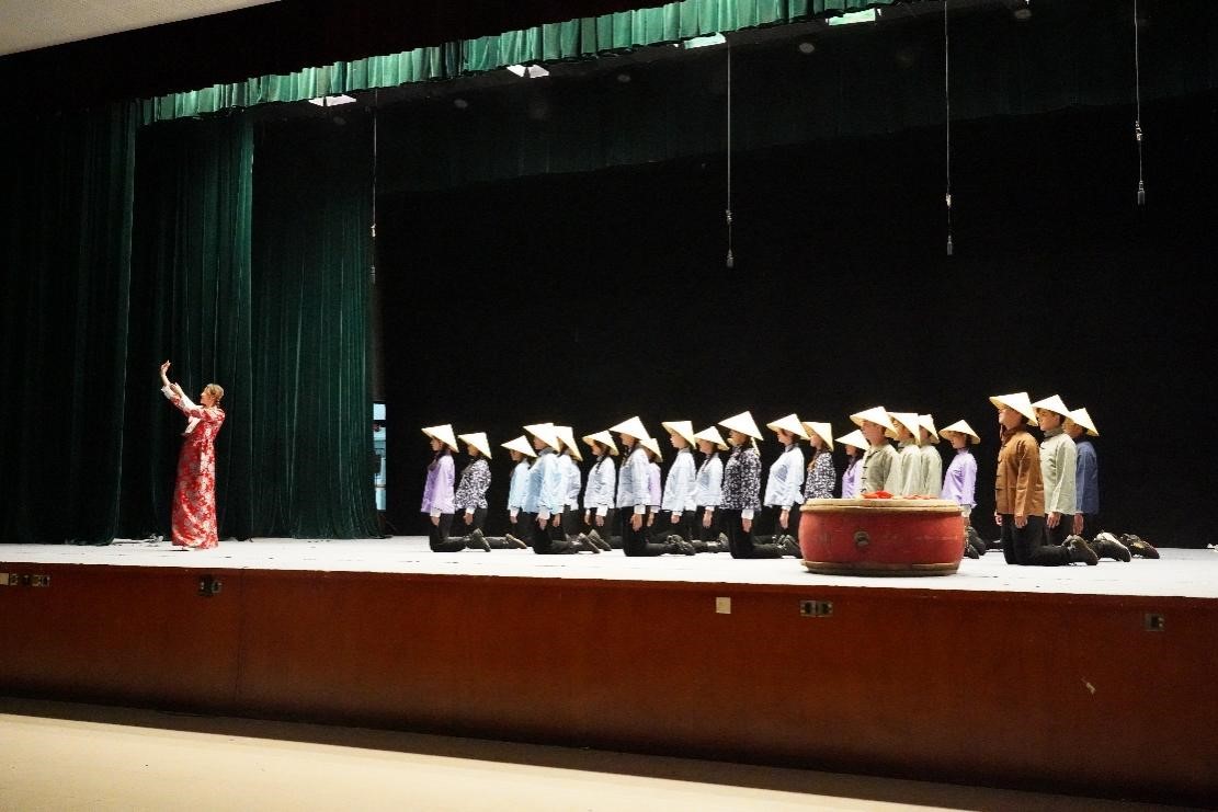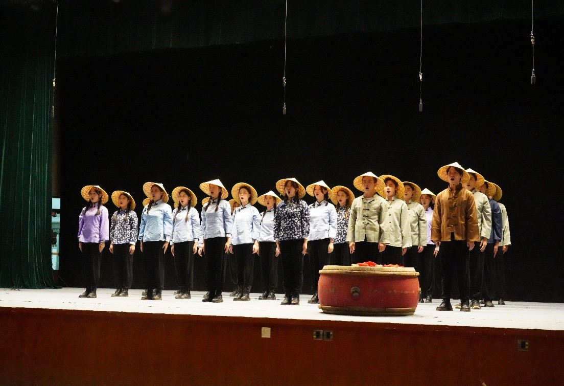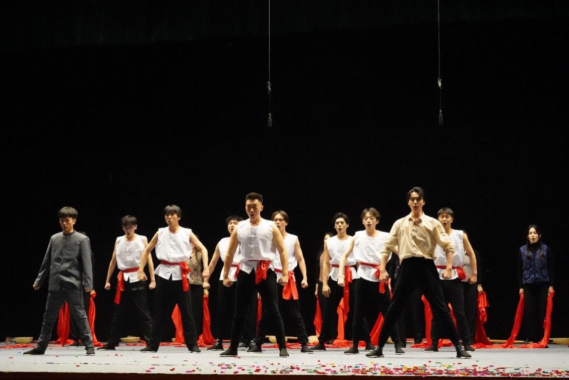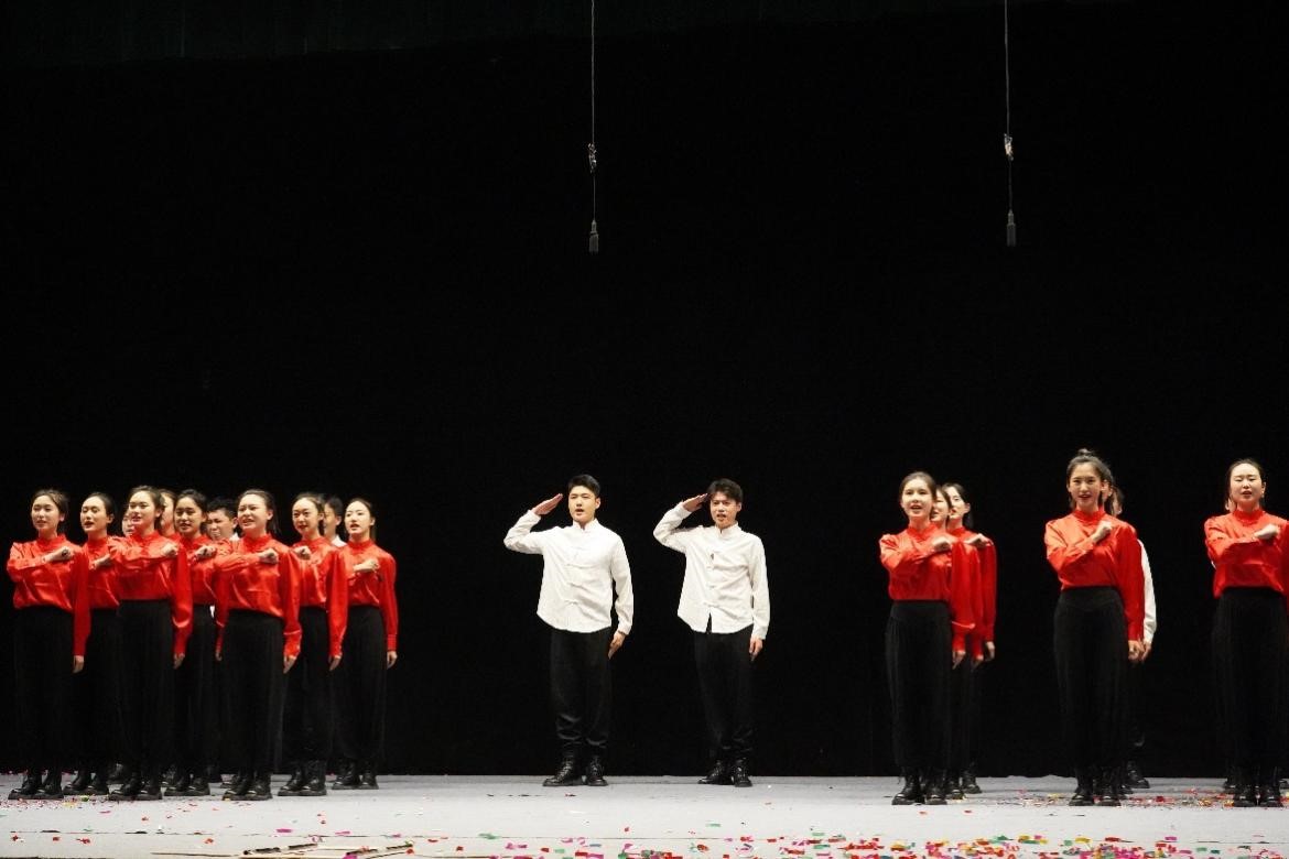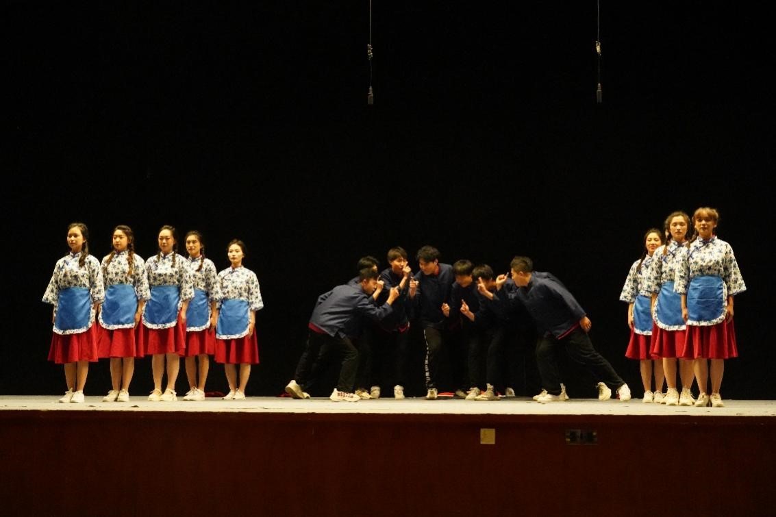 下一个登场的班级是表演一班,他们运用多种道具,用响鼓敲出时代的回响,带大家回首老一辈的奋斗历程,乡村振兴旺,还需民自强,我们要带着老一辈人的努力与魄力,与时代同行。演出呈现出共产党人在脱贫攻坚战中不屈不挠、坚持不懈的精神,完美的表现和精彩的舞蹈表演赢得了现场观众的阵阵喝彩。