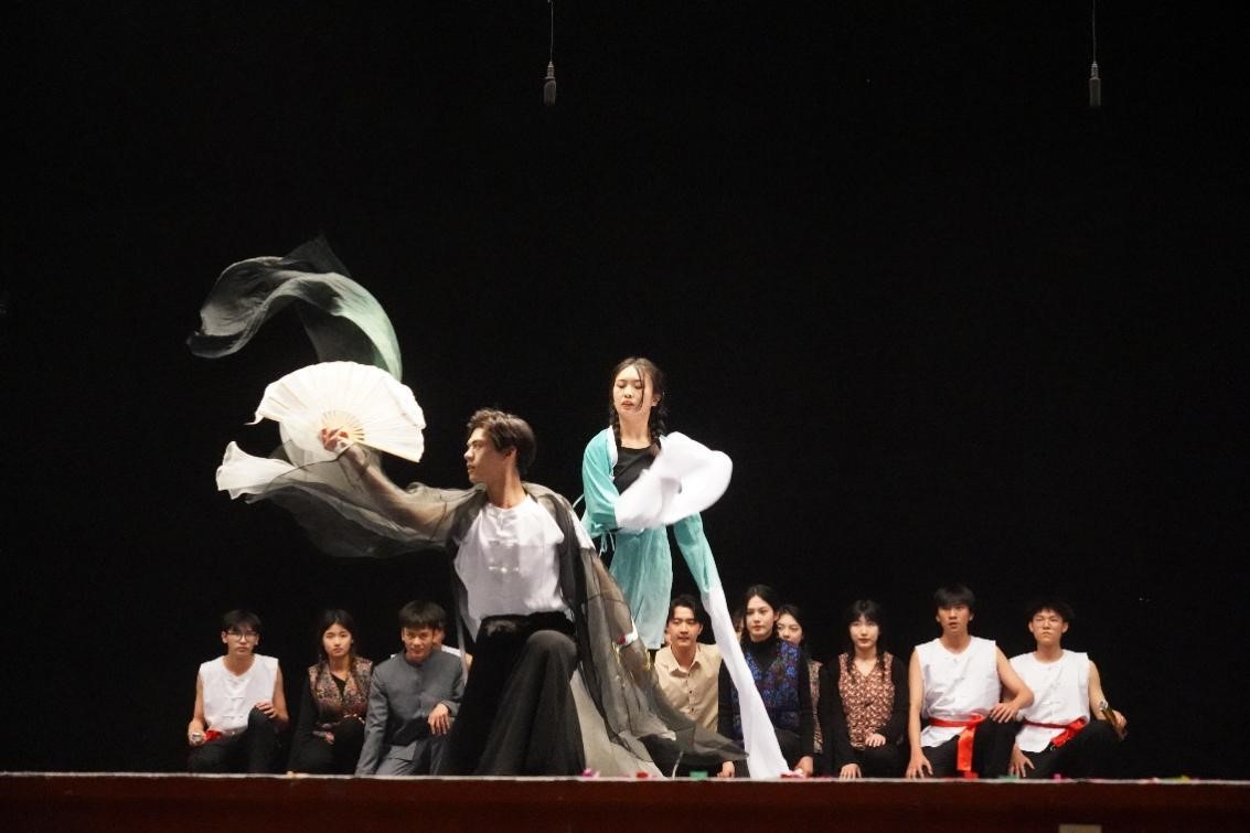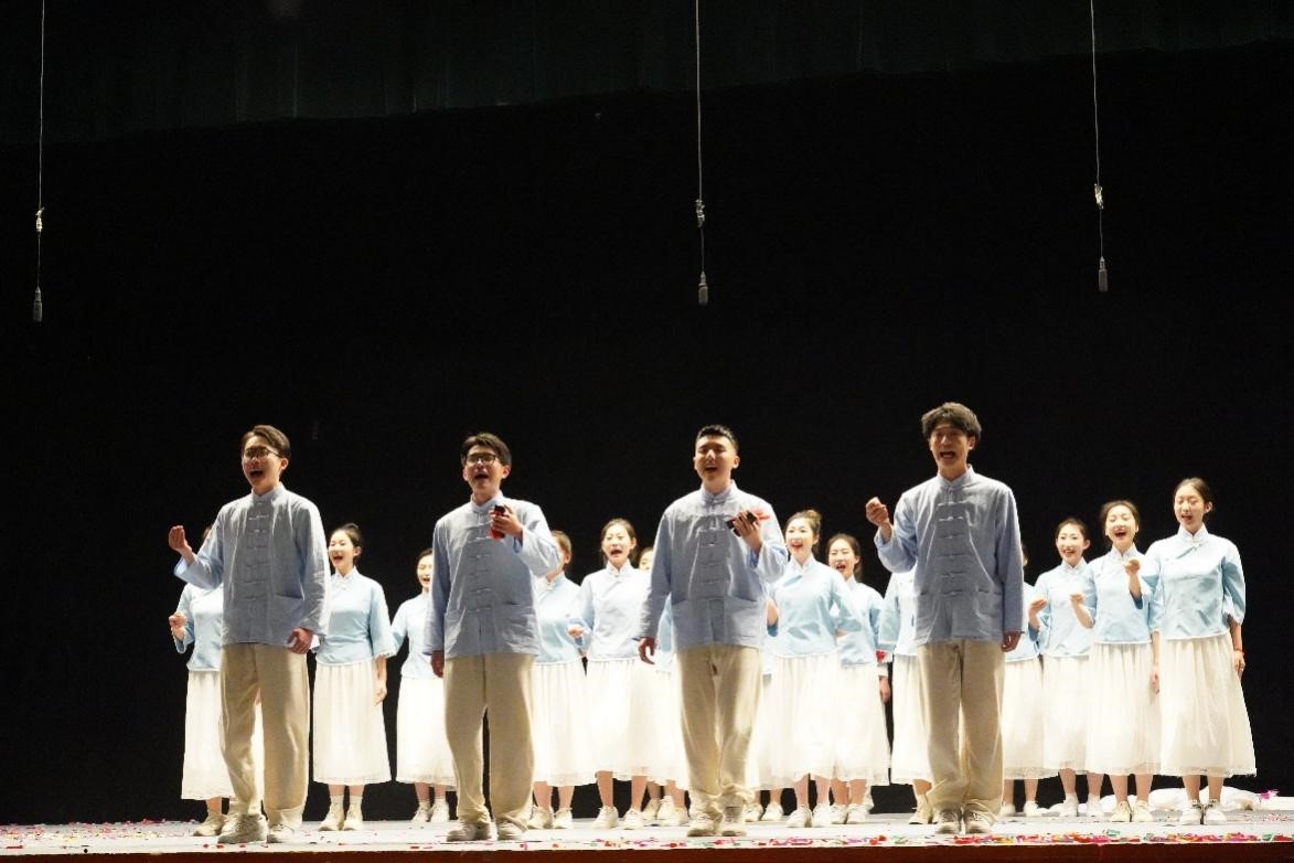 接着登场的是表演二班。他们以脱贫致富之路为线索,讲述了三合村人民在党中央的坚强领导下,克服艰难险阻摆脱贫困,千年夙愿一朝梦圆的伟大奋斗历程,展现了当代青年与时代共振的担当。同学们激情地呐喊和细腻的表演,真实的向我们展现了乡村振兴之路。