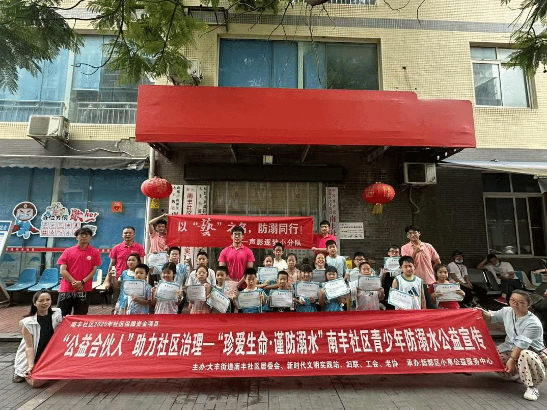 7月12日,我院学子在成都市新都区南丰社区开展为期七天的志愿服务活动。同学们以青少年防溺水为主题,以心筑梦少年成长,以行守护少年健康。