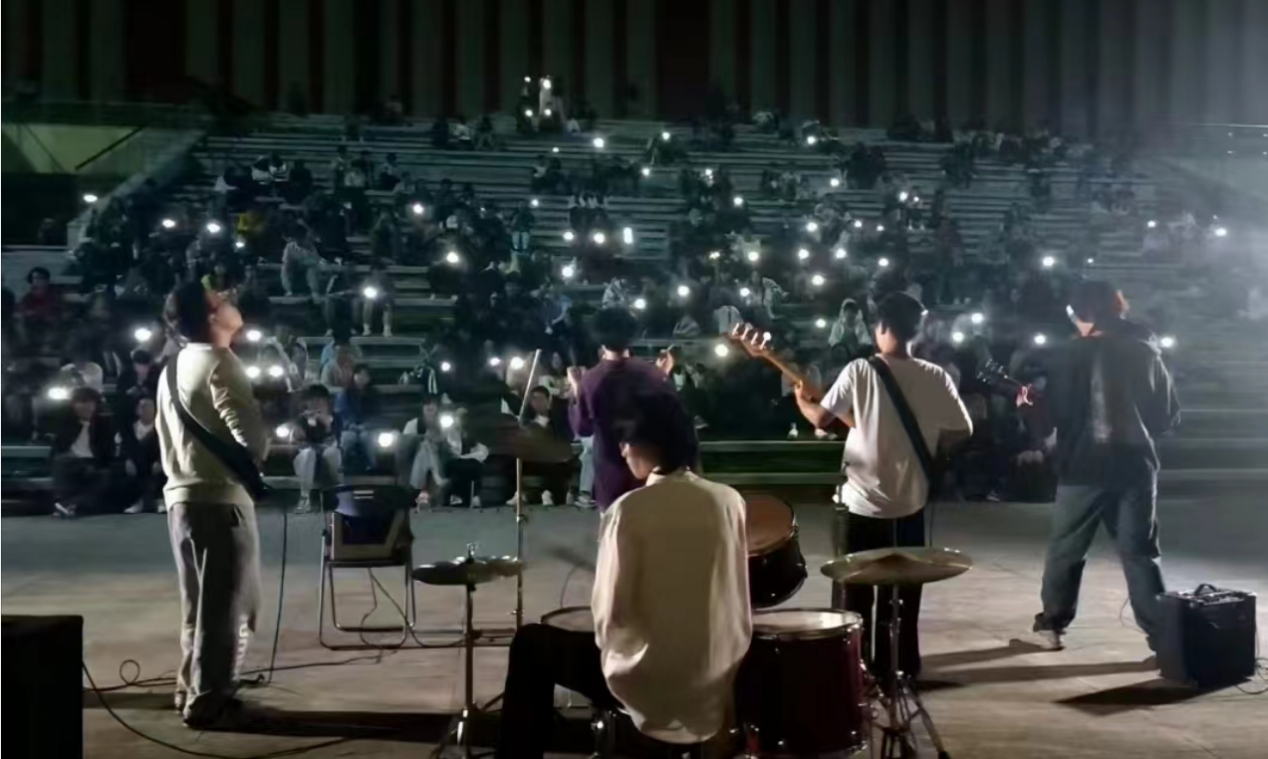 10月14日,吉他协会举办了一场精彩纷呈的下沉广场音乐会。活动开始,作为热场环节,吉协理事雷使德为大家献上了《可惜没如果》、《不为谁而作的歌》两首歌曲,带动全场氛围。紧接着,吉他协会两支乐队先后出场,将全场氛围引向高潮。现场观众自觉将手中的灯光打开,台上乐手们犹如置身于浩瀚星空演奏,场内的每一个人沉浸在了这场音乐会的热烈氛围中。乐队表演结束后,吉他协会会长蒋茂林为大家献上一首《死了都要爱》再次点燃全场。