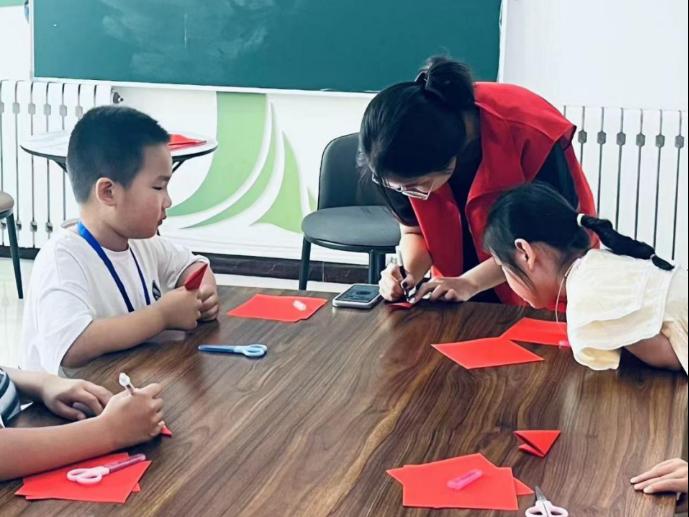 匠心独运,传承传统文化。7月11日的手工课,志愿者们在内容设计上,采用互动式教学,以充满趣味的方式教授孩子们剪纸的技巧。通过讲解与示范,孩子们学会基本的剪纸方法,每一次折叠、每一次剪裁都体现出孩子们的巧思。当看到自己亲手完成的剪纸作品时,孩子们的脸上洋溢着自豪与喜悦。这次手工课不仅让孩子们体验到传统文化的魅力,更在他们心中种下传承与创新的种子。