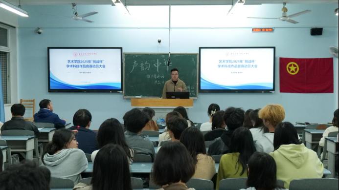 为深入学习贯彻习近平新时代中国特色社会主义思想和党的二十大精神,深入落实习近平总书记关于青年工作的重要指示,培养广大学生的创新意识、创造思维、科研能力和学术精神,10月31日19:00,艺术学院召开2025年“挑战杯”大学生课外学术科技作品竞赛动员大会,为同学们全面地介绍了竞赛各环节的具体要求及注意事项。本次会议由艺术院团委副书记李安然主讲。