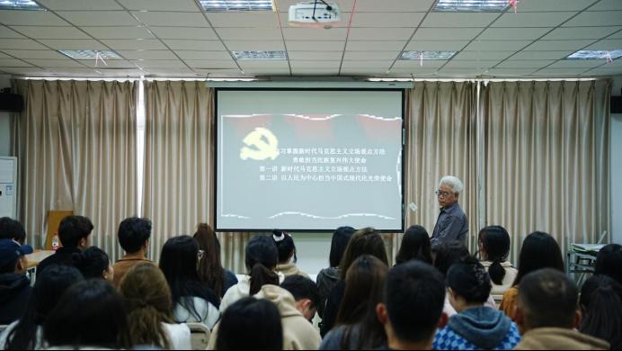 11月7日14:30,艺术学院在“一站式”学生社区18栋楼外语角学生活动教室成功举行2024秋季学期入党积极分子培训班暨“青年马克思主义者培养工程”培训班第二次党课。党课以“学习掌握新时代马克思主义立场观点方法,勇敢担当民族复兴伟大使命”为主题,由四川大学教授徐纪律主讲。