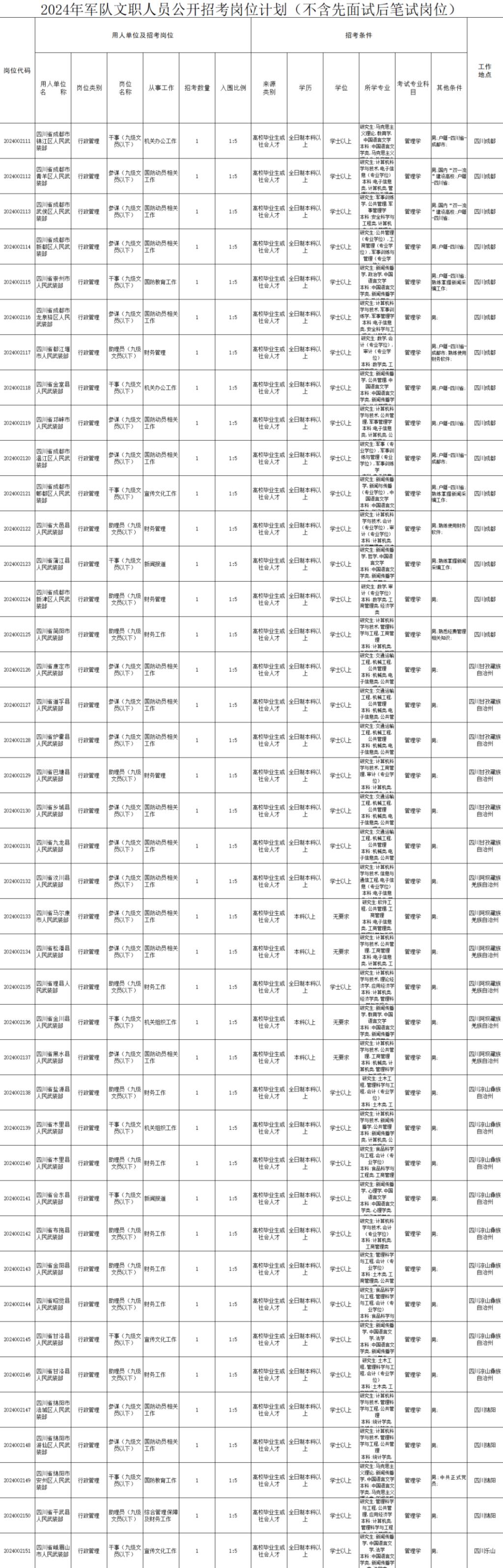 报考人员应当符合《中国人民解放军文职人员条例》规定的基本条件,同时具备下列资格条件: