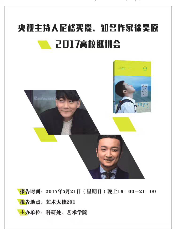 徐昊原携新书《每个人都爱别人》与央视节目主持人尼格买提走进高校。与高校学子分享写作心得以及工作和学习的方法。