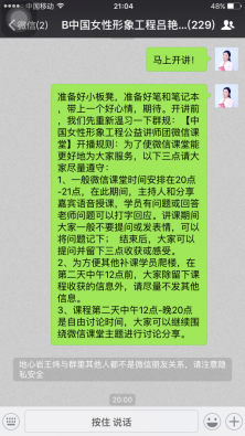 6月20日和23日晚,在艺术学院副院长林莉的主持下,艺术学院播音与主持艺术教研室主任王炜在全国妇联中国女性形象工程公益讲师团微信群成功进行了《培训师嗓音塑造》微课,受到了449位来自全国各地的老师的一致好评。