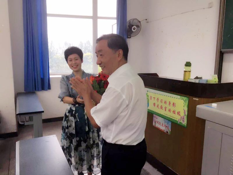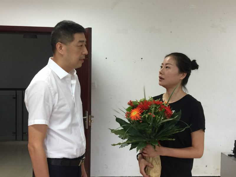 在艺术楼,侯忠建副部长为老师们送上了鲜花,与老师们进行了短暂交流,叮嘱大家注意身体健康,做到快乐工作。
