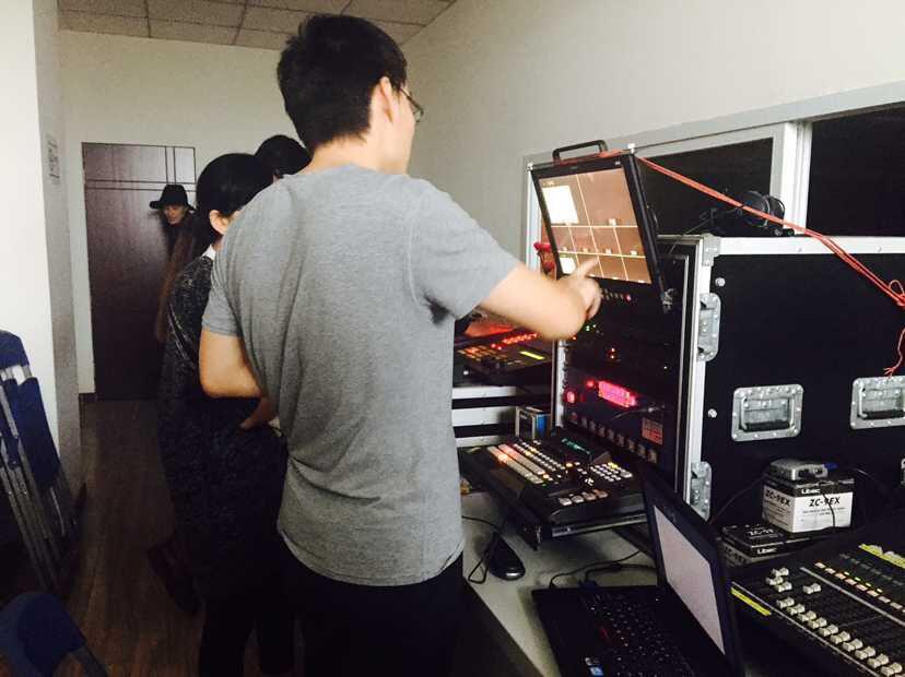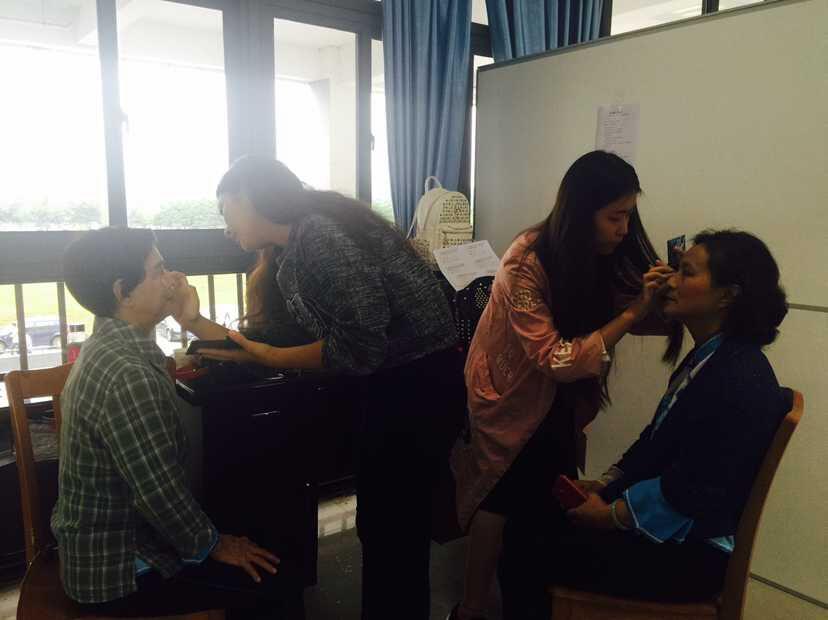 艺术学院高度重视此次文艺演出,提前安排各部门做足准备工作。昨天中午,就有学生到201演播大厅迎接老教授们的到来并且帮助现场工作人员布置文艺演出会场。演出开始前,我院老师和同学们有的在学生之家为参加演出的老教授们化妆;有的休息室在陪老教授们聊天寒暄;有的在中控室反复确认机器设备是否正常;有的在后台有条不紊的摆放道具;积极为即将开始的演出做准备。