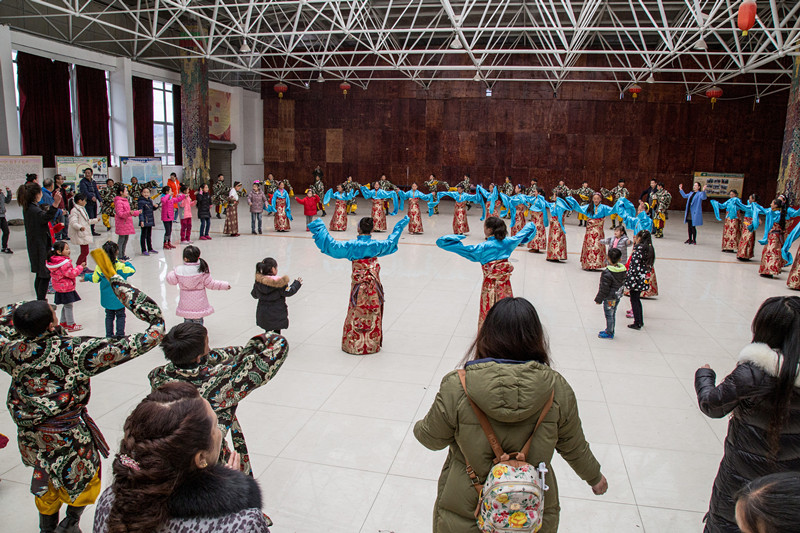 | 全体人员共同跳起藏族特色舞蹈“锅庄” |