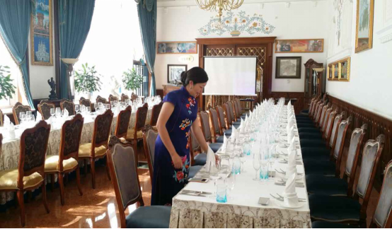 林莉老师采用西餐实训的方式,为企业家代表们详细的讲述了中西方餐饮文化差异、西餐菜序、点餐、餐具使用及用餐礼仪,同时分享了英式、法式、俄式、美式等西餐服务礼仪,受到学员们的一致好评。深圳市福田区委常委、区外事(港澳)办主任吴晶女士对此次培训给予了高度评价。