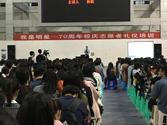 4月5日,我校艺术学院林莉老师应西华师范大学邀请,赴南充对该校遴选出的900名通用志愿者和100名礼仪志愿者进行培训,受到西华师范大学师生一致好评。