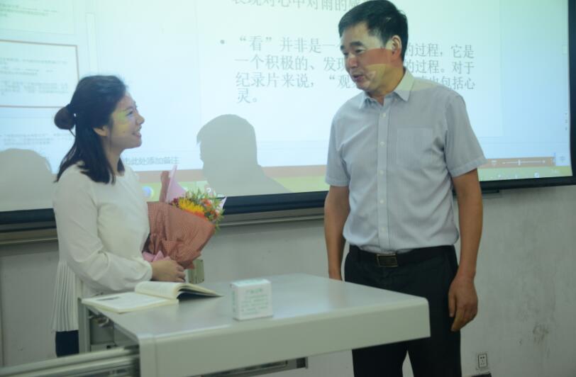 今天学校总共看望了79位教师。我院新进青年教师张艺芬收到鲜花后,激动不已。“这是我人生中的第一个教师节,也是我收到的第一个教师节礼物,真的没有想到校领导会走进教室,亲自把祝福送给我们,既惊喜,又温暖,真心难忘。”