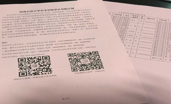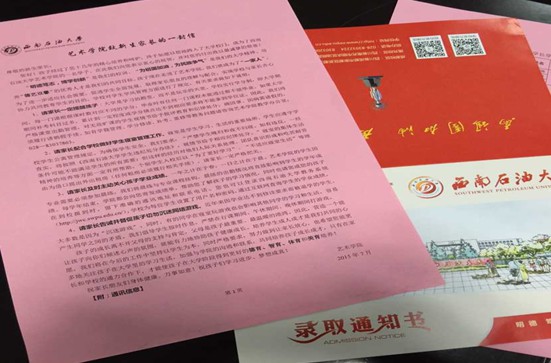 “新生手册、缴费清单、银行卡... ...”刚收到西南石油大学艺术学院2015级新生录取通知书的小吴正在如数家珍的清点学校寄来的东西。“这里还有一封‘学长导航’计划联系表。”小吴将计划表打开,里面是一名“导航员”的姓名、年级、联系方式以及“导航员”亲笔书写的寄语和入学注意事项,这让小吴心中对于一开始就如此贴心服务倍感温暖,让他对于大学生活更加充满期待。