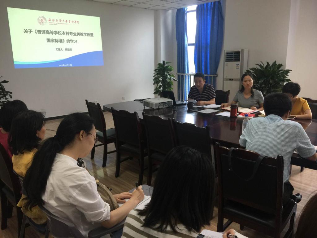 会上,院长焦道利组织学习了《普通高等学校本科专业类教学质量国家标准》。他要求,各教研室要在认真对比现行培养方案和《普通高等学校本科专业类教学质量国家标准》的基础上,组织全体教师认真学习,找出存在的问题,提出改进措施,为2019版人才培养方案的修订工作做好准备。