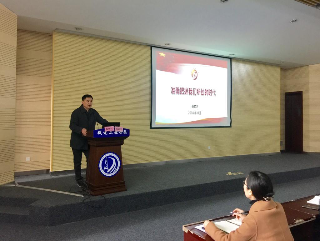 11月29日下午,校党委常委、副校长张文卫在明志楼B105为艺术学院、体育学院教职工作题为《准确把握我们所处的时代》的形势报告。本次报告也是艺术学院青年党员干部理论培训班第四讲。报告由艺术学院党总支书记殷冲主持,艺术学院、体育学院领导班子成员及全体教职工参加报告会。