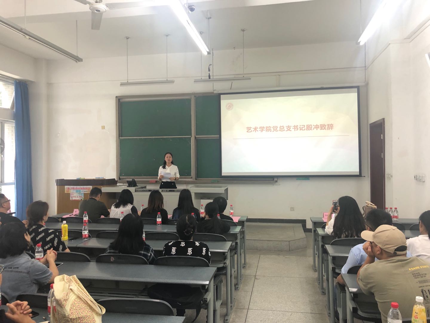 党总支书记殷冲在致辞中就学校办学实力和水平、学校的文化和风气、学生教育管理的传统以及艺术人才的培养能力和水平给新生家长做了简要介绍。她还向家长提出要继续关注孩子的成长,做到放手但不放任。并代表学院领导班子和全院教职工向家长做出“坚守教育初心,为同学们全面发展竭心尽力,为同学们健康成长保驾护航”的郑重承诺。