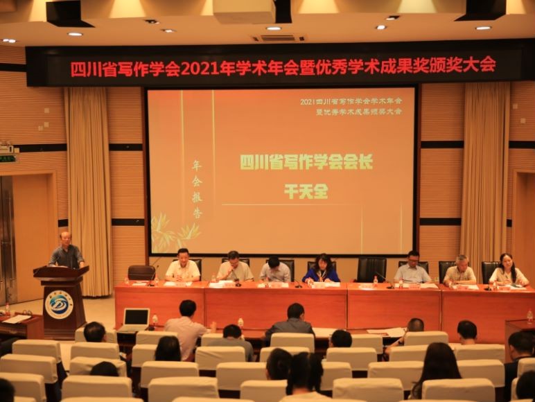 6月26至27日,四川省写作学会2021年学术年会暨优秀成果颁奖会在我校召开。来自四川大学、电子科技大学、西南交通大学、西南财经大学、四川农业大学、西南石油大学、西南民族大学、成都理工大学、四川师范大学、西华师范大学、西华大学、四川音乐学院、成都信息工程大学、四川开放大学等40多所高校的98名会员代表参会。学校党委副书记衡彤、四川省写作学会会长干天全及学会主要负责人,四川省社科联、四川日报集团、四川省宣传文化部门的嘉宾出席会议。