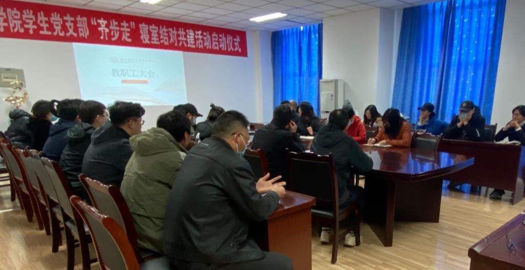 2021年12月2日,学院在艺术大楼306会议室组织召开全体教职工大会,学院党总支书记夏艳、学院院长焦道利、学院党总支副书记何姗、学院副院长江霄以及全体教职工参加,会议由夏艳主持。