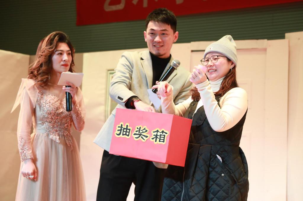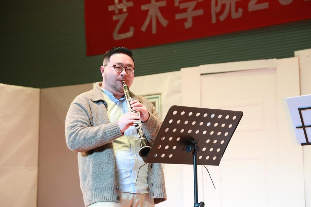伴随全场观众倒计时,联欢会正式开始,学生们集体献上舞蹈《民族舞串串烧》,舞蹈旋律优美、舞姿轻盈。陈焕玲老师独唱的歌曲《美丽家园》豪情满怀、气势磅礴。王园老师及学生们演奏了《单簧管波尔卡》四重奏,欢快、活泼、热烈。李文骐老师的魔术表演,引得现场连连称赞。孙吉招老师独诵的《今夜星光灿烂》慷慨激昂,让在场的观众充分地感受到先辈们的革命英雄主义精神以及献身祖国的壮烈情怀。关航老师的脱口秀表演引得现场爆笑连连,赢得阵阵掌声。现场还穿插着很多的互动节目,吸引在场的老师和领导踊跃参与,台上台下互动平凡,融为一体。
